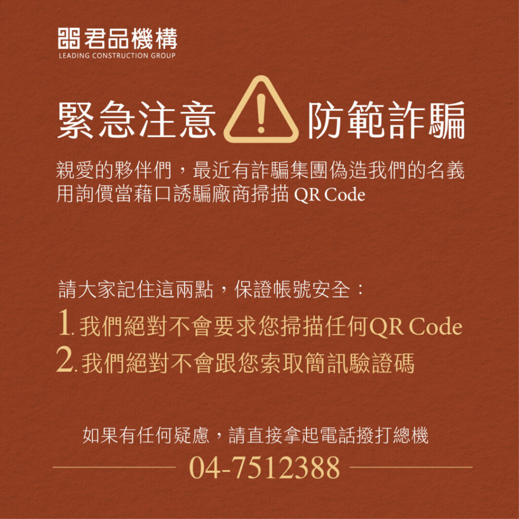 近期我們發現有詐騙集團冒充「[君品機構]」的採購人員,利用採購詢價的名義,誘騙廠商掃描 QR Code 或提供驗證碼,導致部分夥伴的 LINE 帳號不幸被盜。